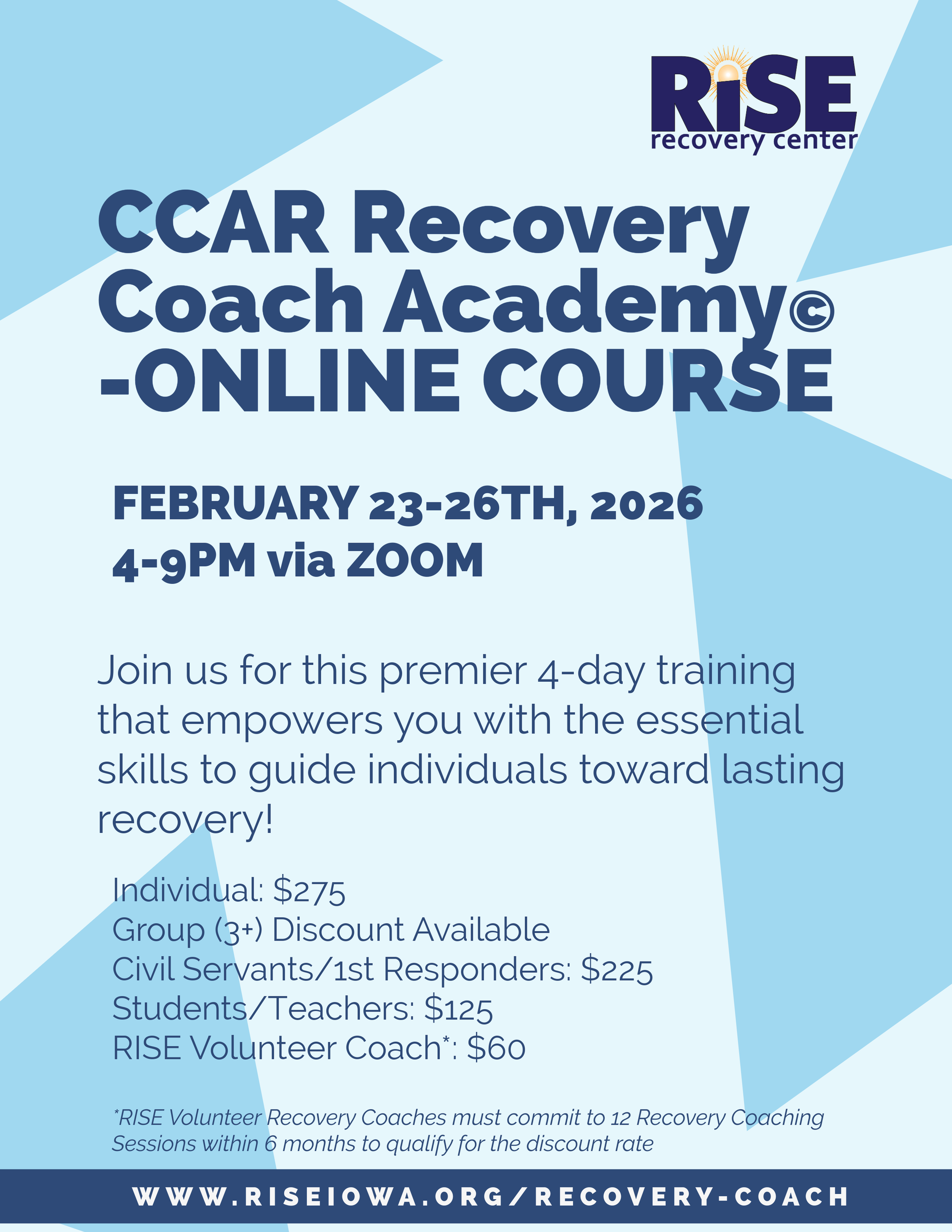 Ignite your passion for helping others and become a trained Recovery Coach with the CCAR Recovery Coach Academy©, the premier 4-day training that empowers you with the essential skills to guide individuals toward lasting recovery.